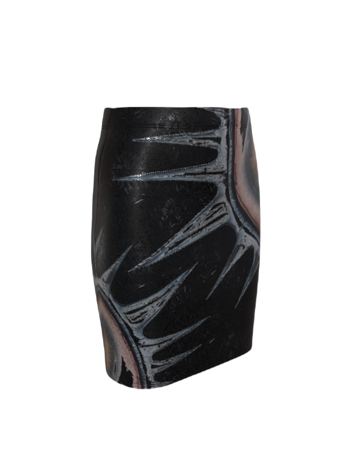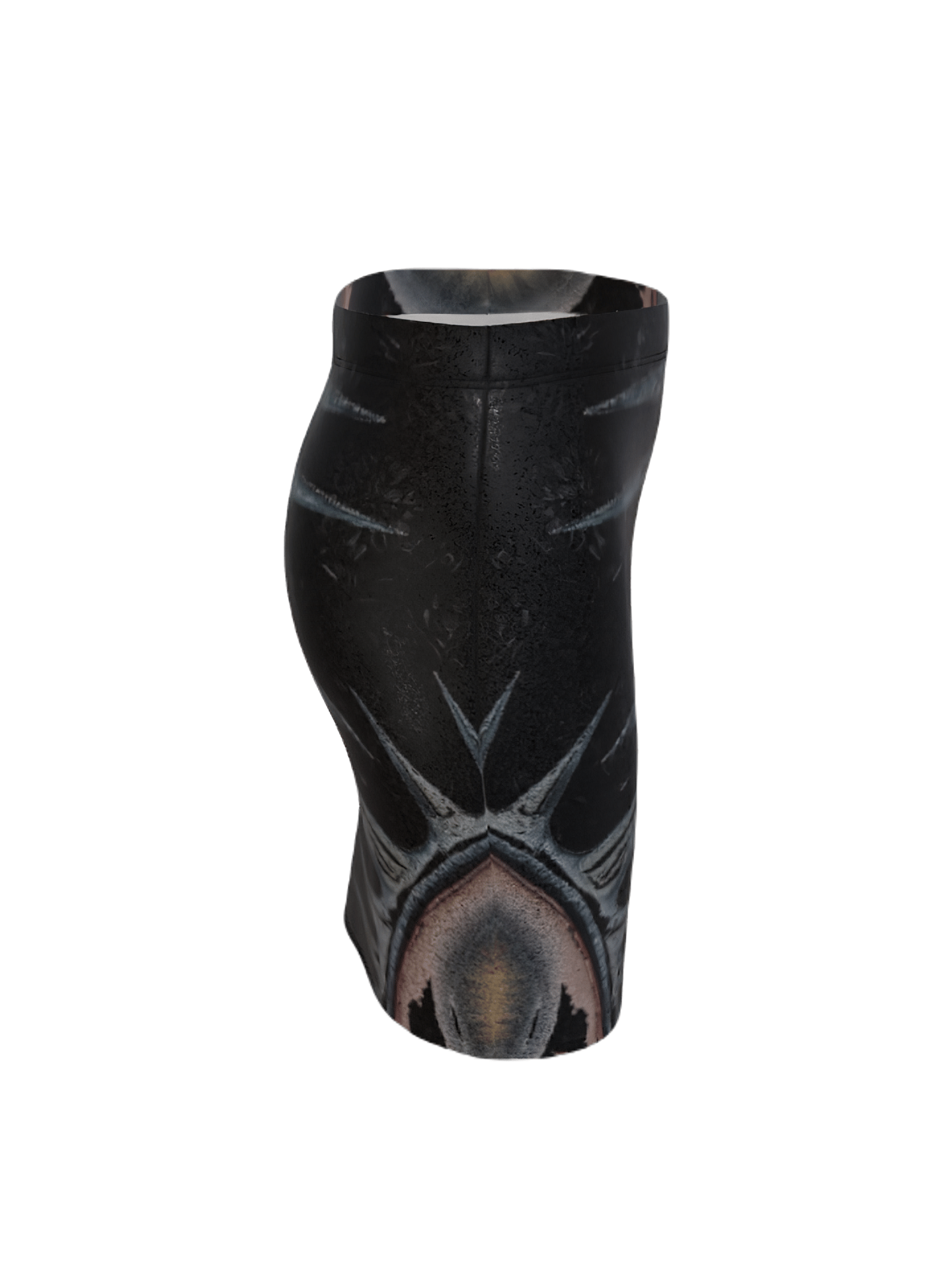 This gothic pencil skirt features a mesmerizing seeing eye, echoing the eerie grin of the Cheshire Cat from *Alice in Wonderland*. Mysterious and surreal, it hugs curves with a dark elegance—perfect for those who walk the line between fantasy and rebellion. A statement piece for the bold and curious.